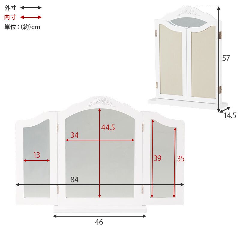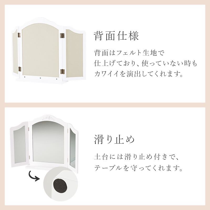 卓上三面鏡 かわいいレリーフ付き MD-6697 卓上ミラー 三面鏡 鏡 ドレッサー 滑り止め 簡単組立