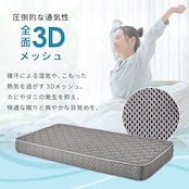通気性の良い3Dメッシュ生地を全面に使用し、寝返りのたびにマットレスの熱気や湿気を逃がします。表裏の両面仕様なのでローテーションすればヘタリを抑えて長く使えます。