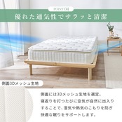 ふかふかのピロートップ付きの極厚マットレス。防ダニ、抗菌、防臭機能付きの中綿と張地には竹繊維、竹炭を練りこんだ繊維を使用しています。