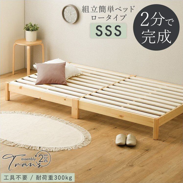 組立簡単ベッド Trans-トランズ- セミシングルショートサイズ TRS-SSS ベッド すのこベッド ローベッド LVLすのこ 工具不要 2分で完成 簡単組立 通気性 頑丈 耐荷重300kg 天然木 パイン コンパクト梱包 SSS