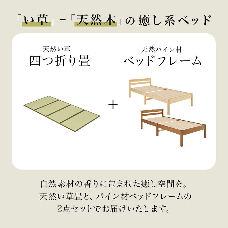 組立簡単 畳シングルベッド MB-5152S-クラマ ベッド 畳ベッド シングルベッド すのこベッド ネジなし 工具不要 畳マット 天然い草 天然木 パイン 宮棚 コンセント付き