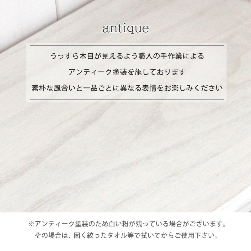 シンプルなデザインのチェストをフレンチアンティーク風に仕上げています。一人暮らしで使いやすいコンパクトサイズ。