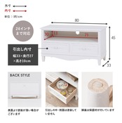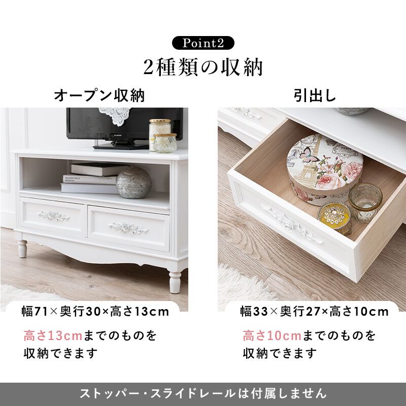 テレビ台 MTV-8192 完成品 テレビボード リビングボード 幅80cm アンティーク調 ホワイト家具 天然木 桐材 オープン収納 引き出し収納 浮き彫り 薔薇 バラ 取っ手 24V