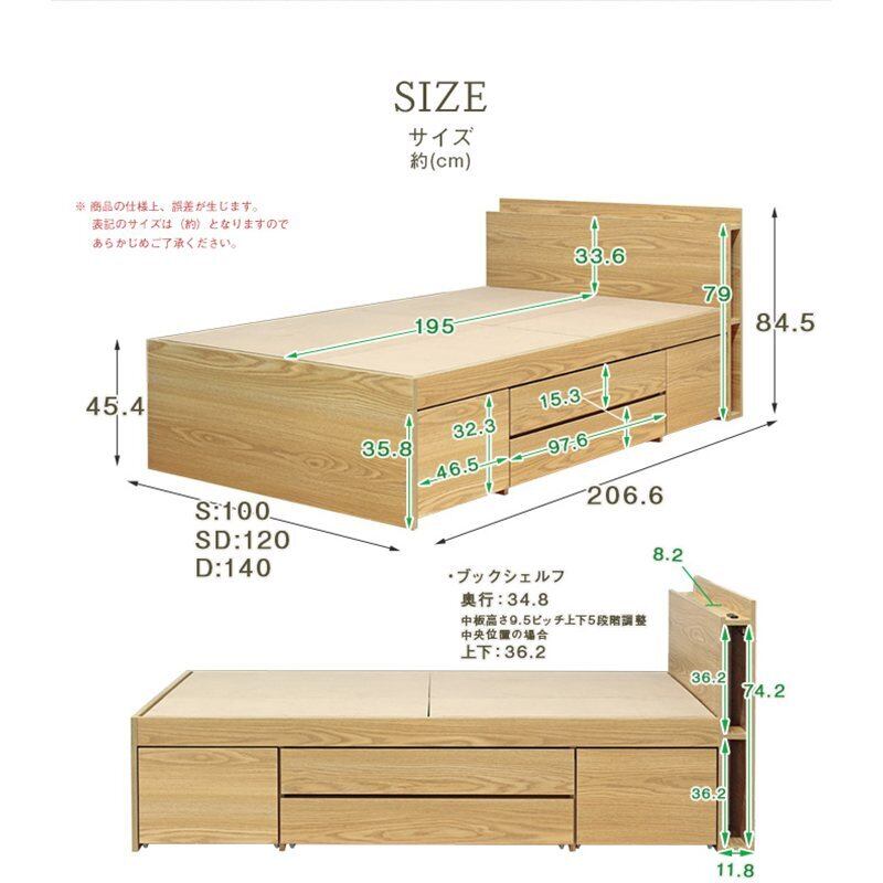 Cattleya【カトレヤ】チェストベッドフレーム セミダブルサイズ cy44404 チェストベッド 収納ベッド 大容量収納 引き出し付き 2口コンセント ホコリ防止機能付き ブックシェルフ ワンルーム