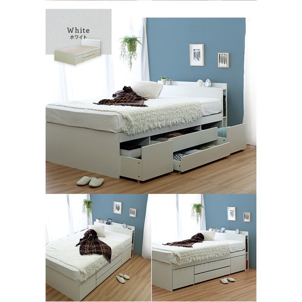 Cattleya【カトレヤ】チェストベッドフレーム ダブルサイズ cy44405 チェストベッド 収納ベッド 大容量収納 引き出し付き 2口コンセント ホコリ防止機能付き ブックシェルフ ワンルーム