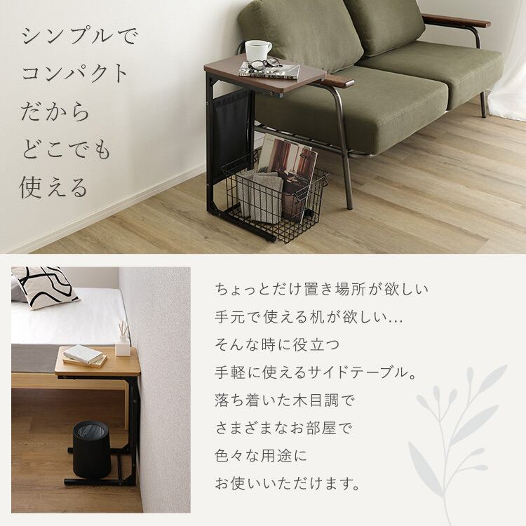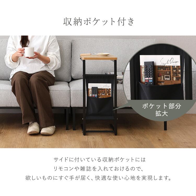 自在に使える 木目調サイドテーブル CST-40 テーブル コーヒーテーブル 作業スペース 木目調 収納ポケット付き コの字型 軽量 耐久性 アジャスター付き