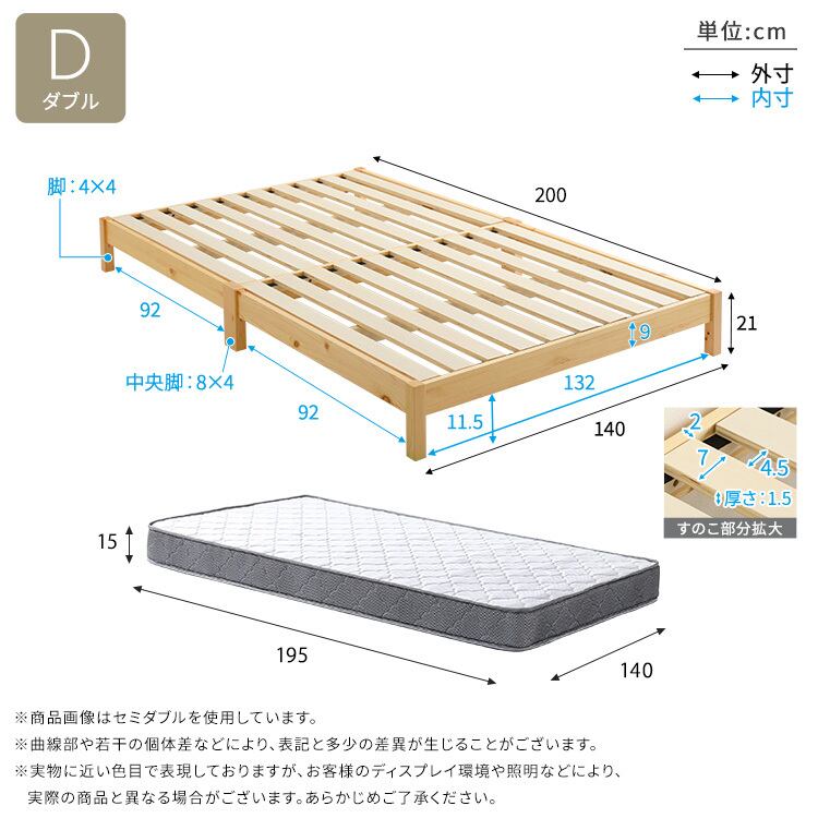 マットレスD:(約)幅140×奥行195×高さ15cm(コイル数:392個)