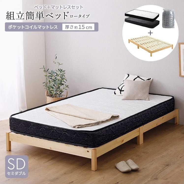 2分で完成!組立簡単ベッド ポケットコイルマットレスセット(セミダブル) TRS-SRM-SD ベッド マットレス セット 組立簡単