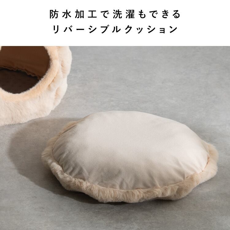 狭くて落ち着くドームの中にはリバーシブルクッション付き。猫はもちろん小型犬もお使いいただけます。また、上部を潰せばベッド型にもなります。