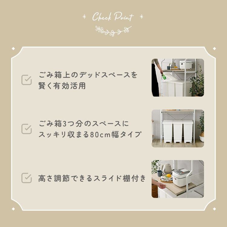 調節可能スライド棚付きワイドごみ箱上ラック FRZ-T3S 幅80cm キッチンラック 収納ラック 頑丈設計 スライド棚付き 可動棚 デッドスペース