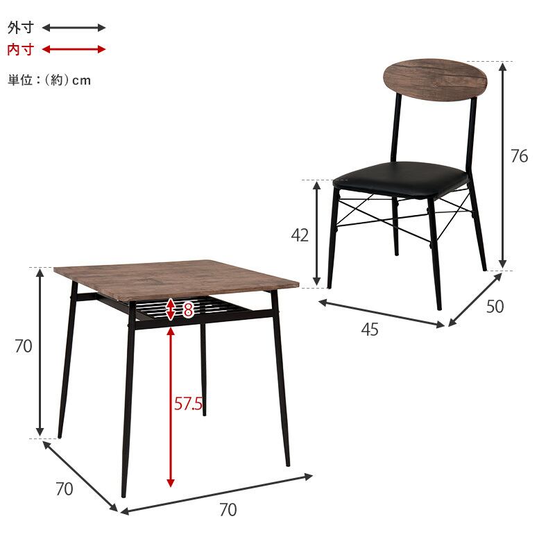 チェア:(約)幅45×奥行50×高さ76×座面高42cm