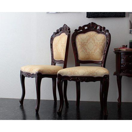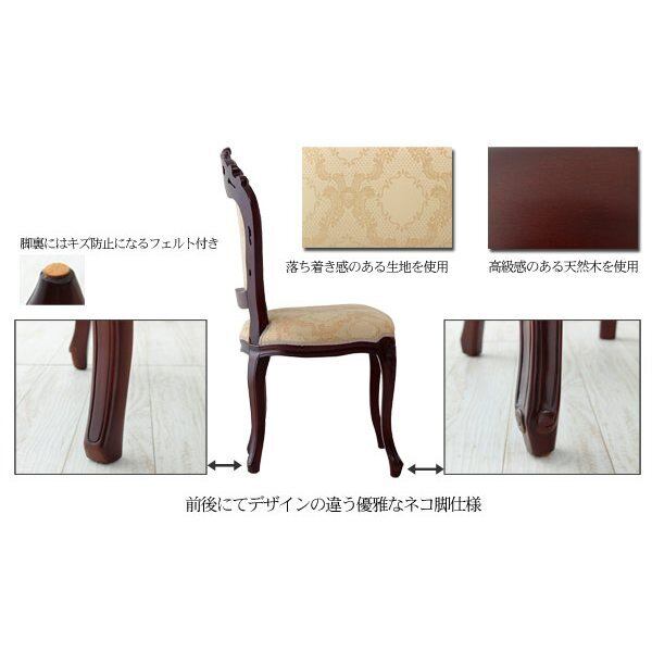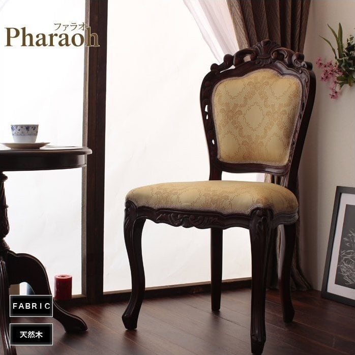 ファラオ チェア 肘無し kr89081 ダイニングチェア アンティーク調 ロココ調 彫刻 手彫り 天然木 背もたれ クッション ネコ脚 ブラウン
