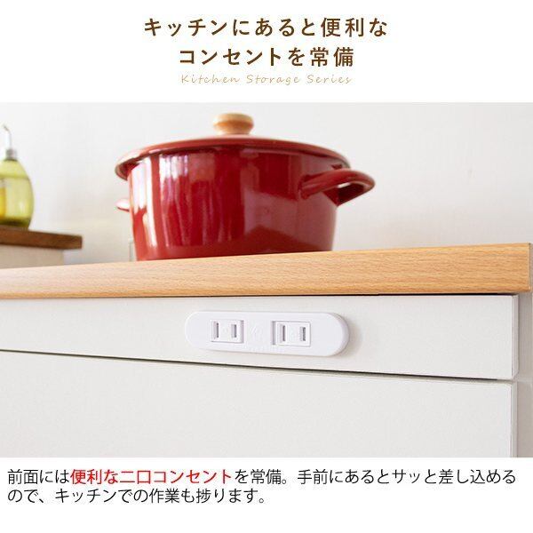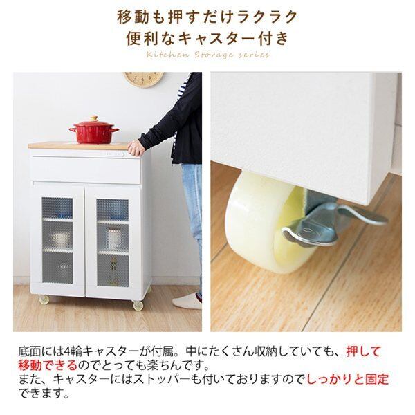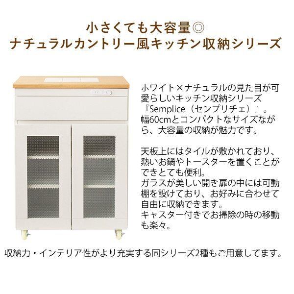 キッチンキャビネット Semplice(センプリチェ) KC-207 幅60cm キッチン収納 天板タイル 引き出し収納 ガラス開き扉 可動棚 キャスター付き コンセント付き