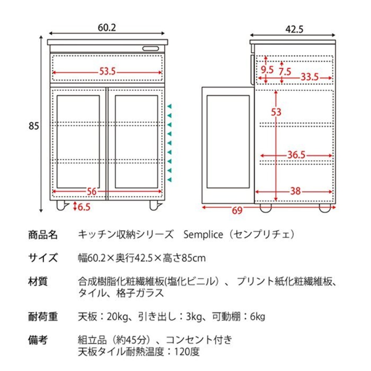 幅60.2×奥行42.5×高さ85cm