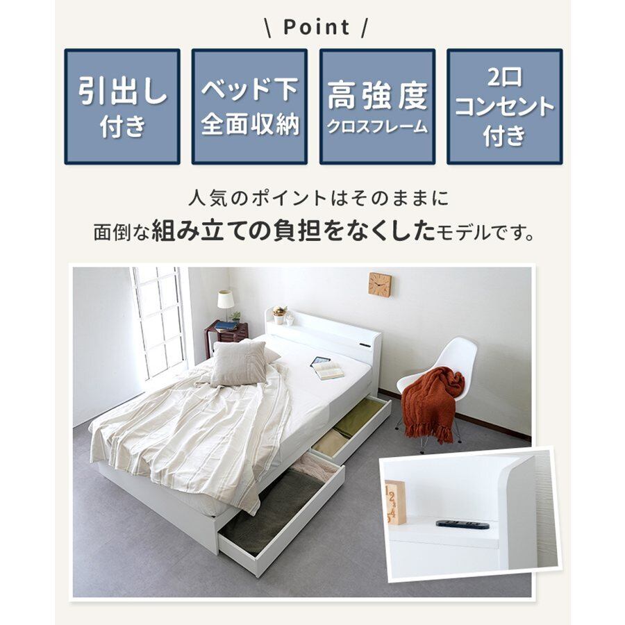 RUES【ルース】 組立の不安を最初から無くすベッド ダブルサイズ 組立設置サービス付き cy44745 ベッドフレームのみ 引き出し収納付き