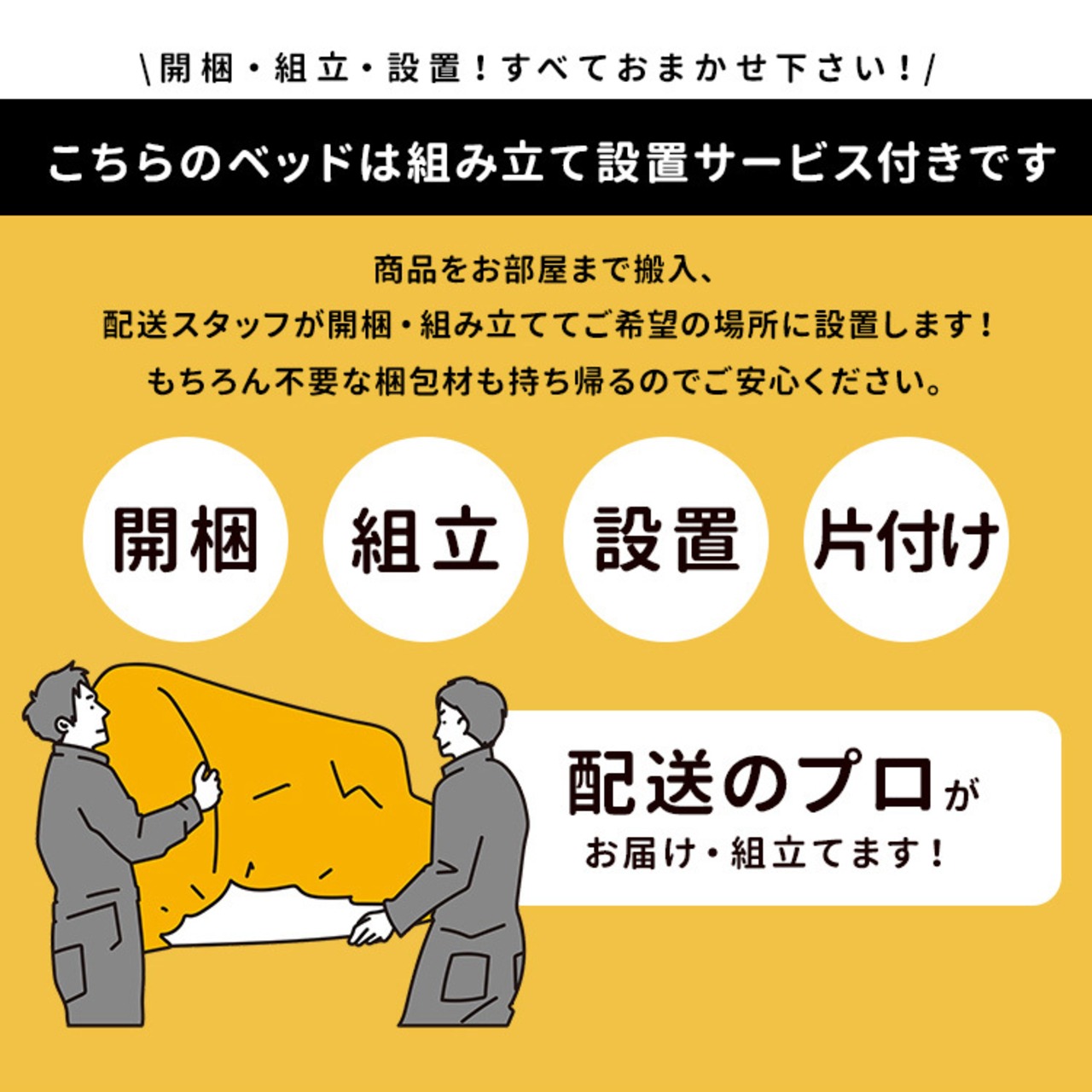 本商品は、組立設置込みでお届けするベッドフレームです。