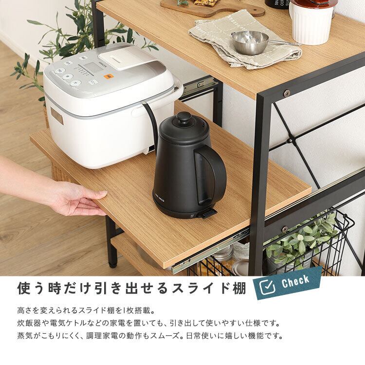 高さ調節可能な棚板付きなので、お持ちの家電に合わせて好きな高さに調節できます!