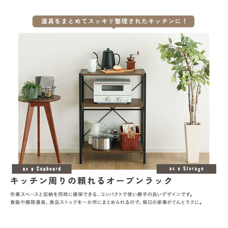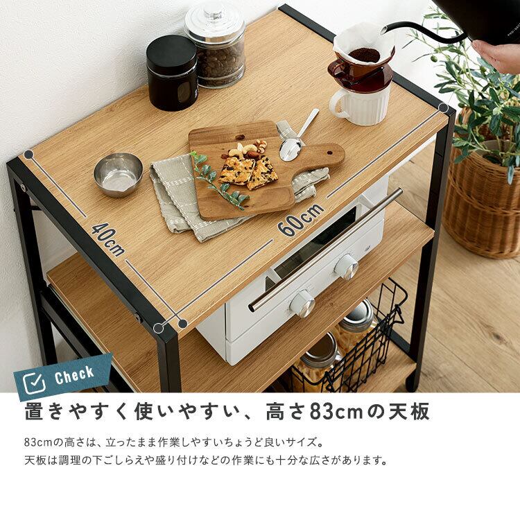 キッチン家電をスマートに収納できるロータイプレンジラックです。