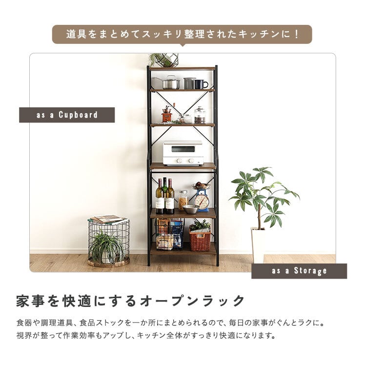 キッチン家電をスマートに収納できるハイタイプレンジラックです。