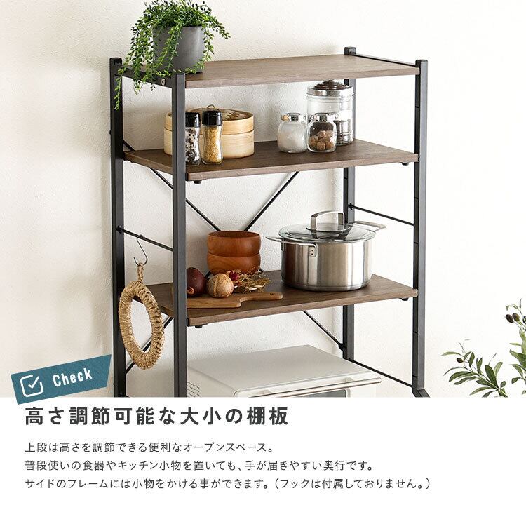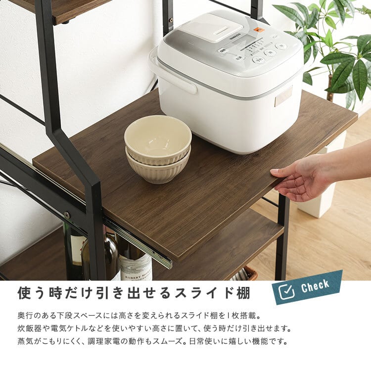 高さ調節可能な棚板付きなので、お持ちの家電に合わせて好きな高さに調節できます!