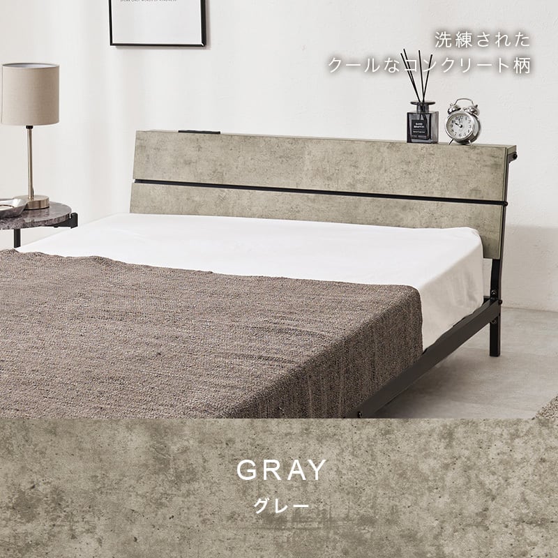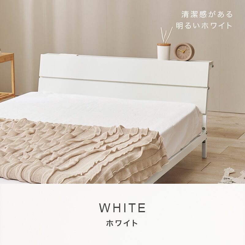 スチールフレームでスッキリとした印象のシングルベッド。ロータイプ設計なので寝室を広く心地よく演出します。便利な2口コンセント付き