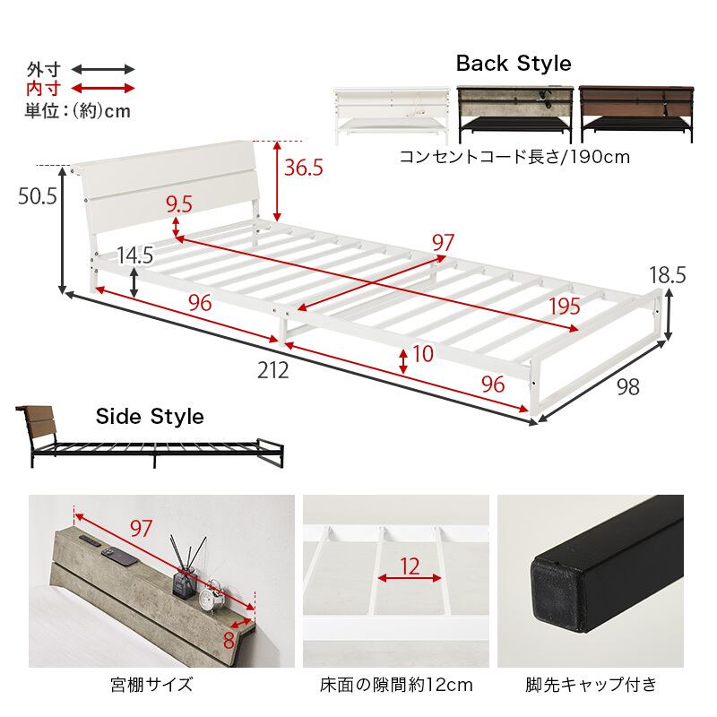 ※こちらは、シングルサイズベッドフレームの販売ページになります。