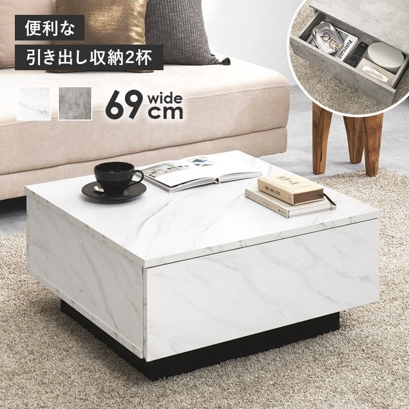 テーブル VKT-7262 幅69cm ロータイプ センターテーブル リビングテーブル 引き出し収納付き 2杯