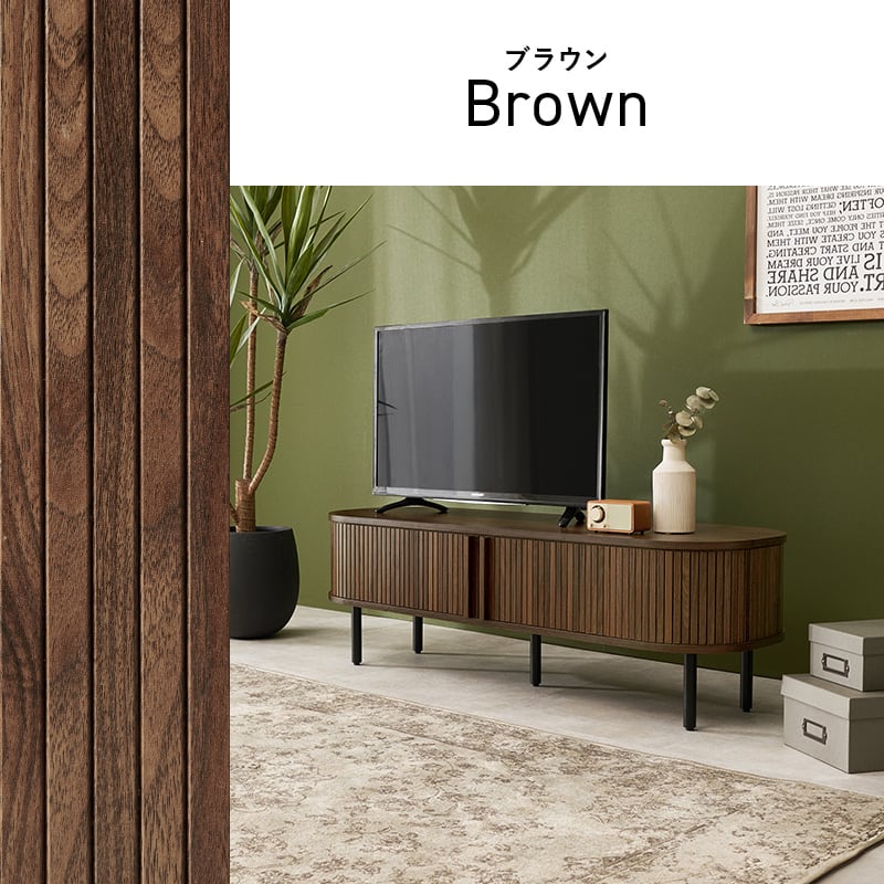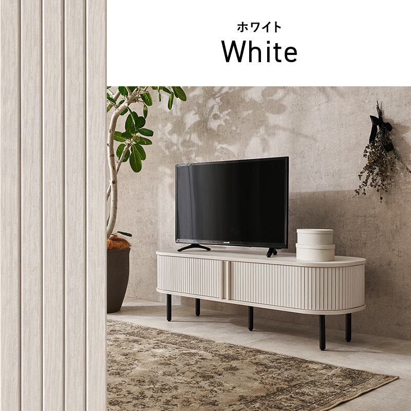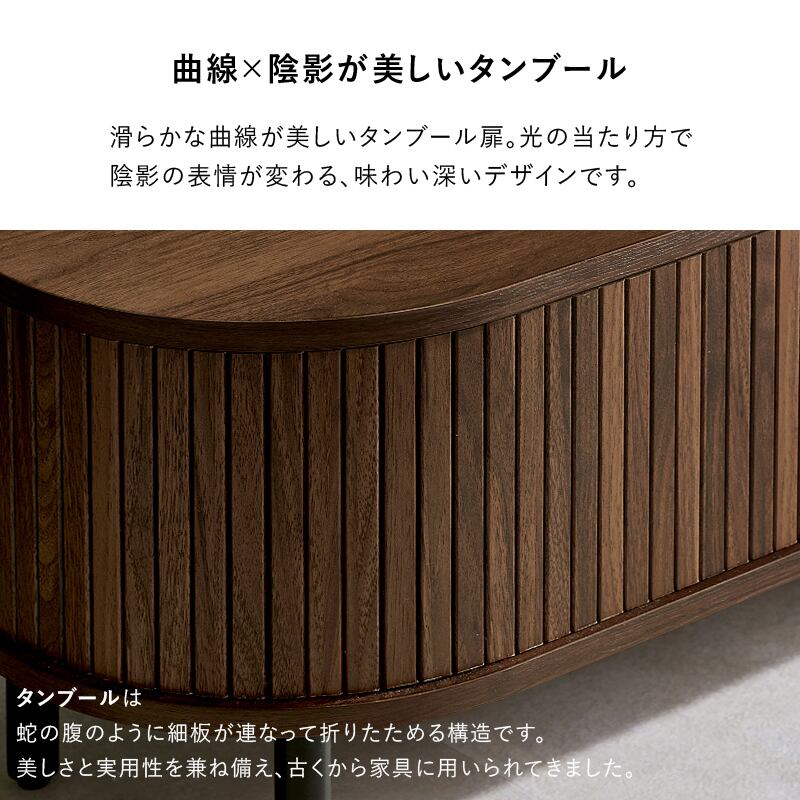 縦のラインとサイドの曲線が美しいタンブール扉のテレビ台。扉の開閉に場所を取らず、すっきりとした脚高デザインもポイントです。ローボードとしても使用可能