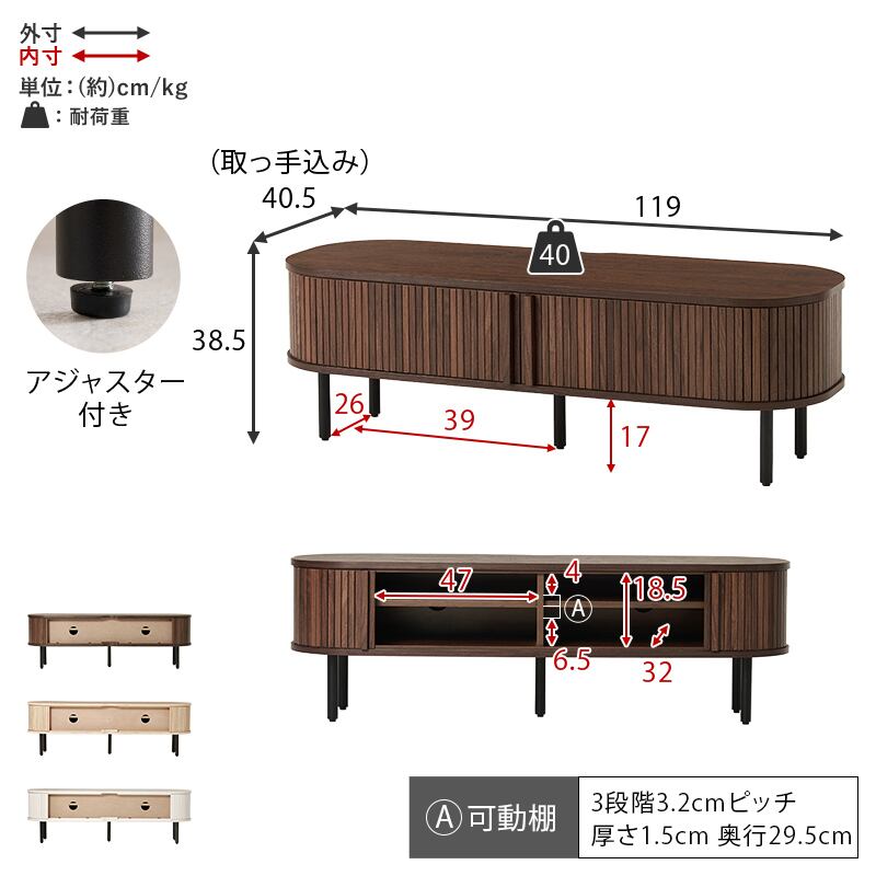 TVボード RTV-1410 幅119cm リビングボード テレビ台 ローボード サイドボード タンブール扉 スライド扉 可動棚 コード穴 アジャスター付き