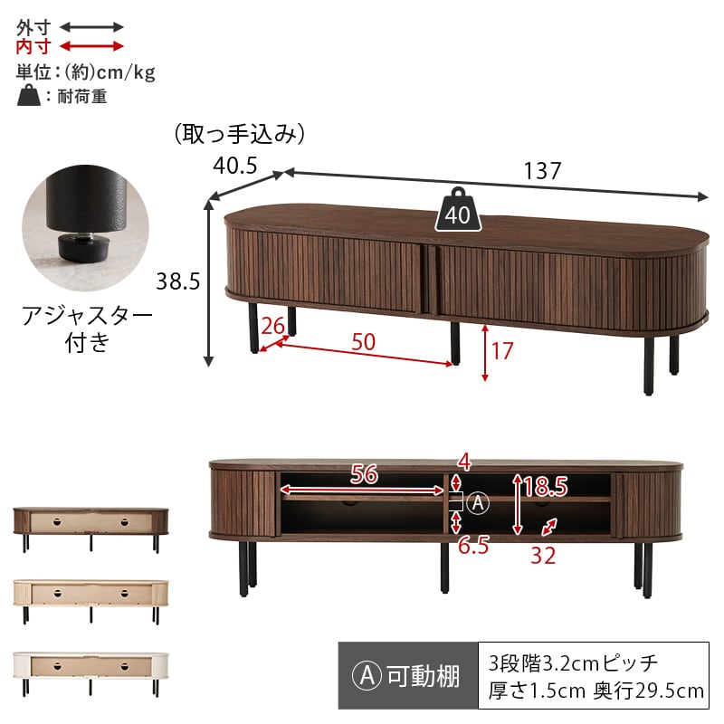 (約)幅137×奥行40.5×高さ38.5cm