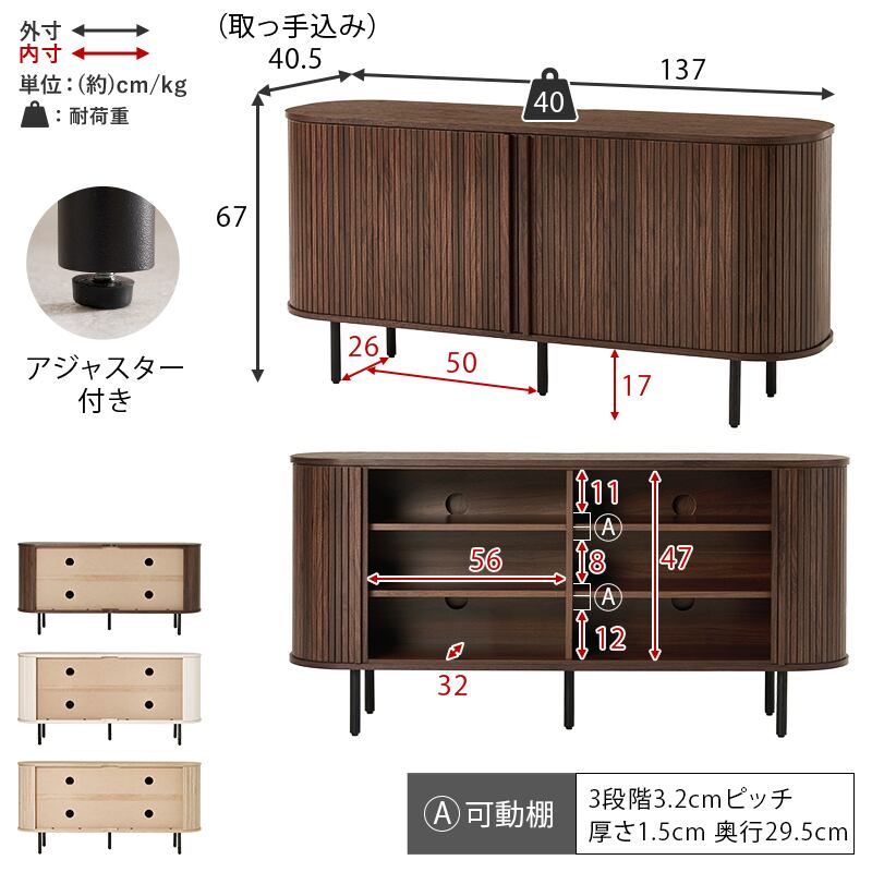 TVボード RTV-1413 幅137cm リビングボード テレビ台 ハイタイプ サイドボード タンブール扉 スライド扉 可動棚 コード穴 アジャスター付き