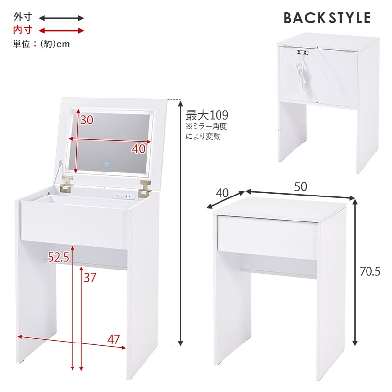 ドレッサー:(約)幅50×奥行40~70×高さ70.5/109cm