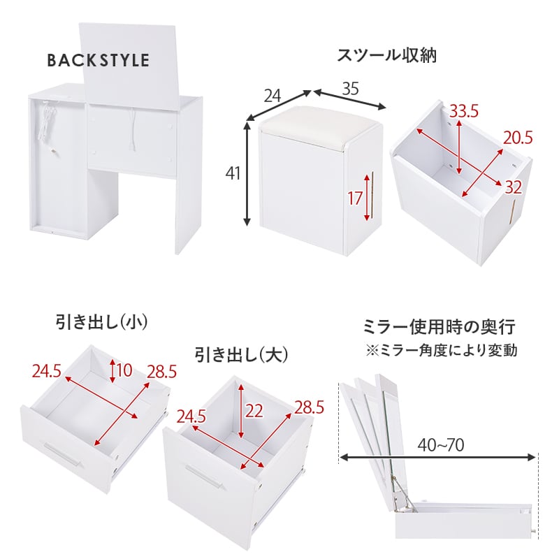 ドレッサー:(約)幅80×奥行40~70×高さ70.5/109cm