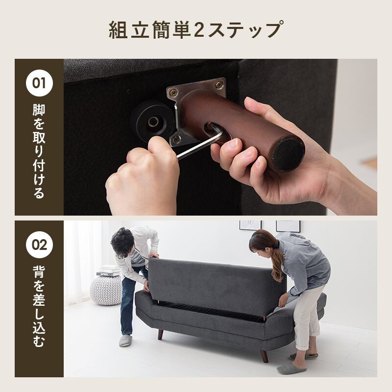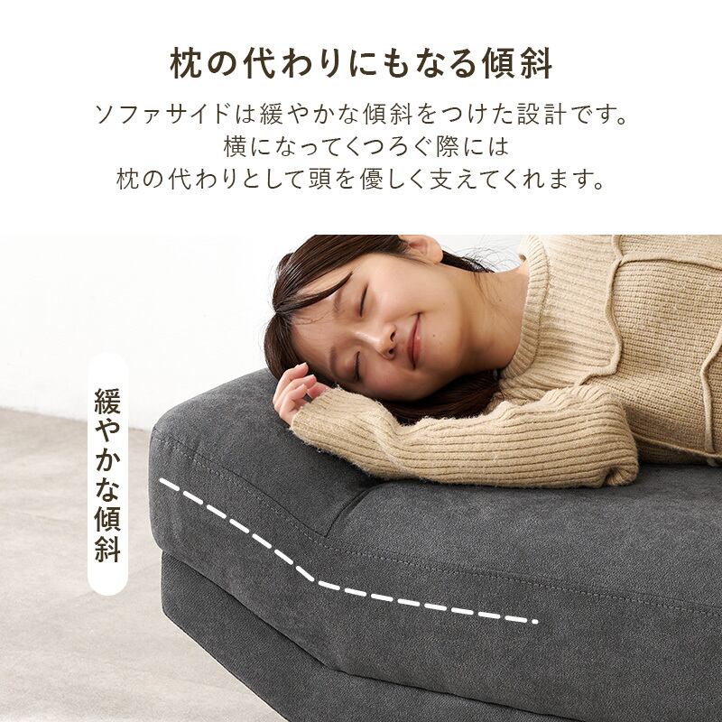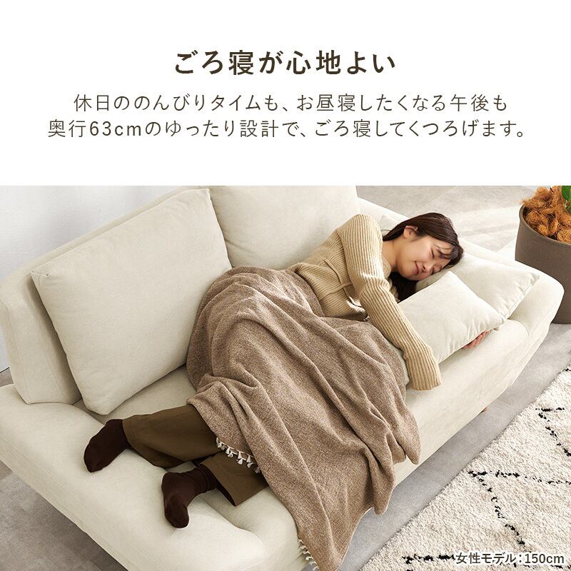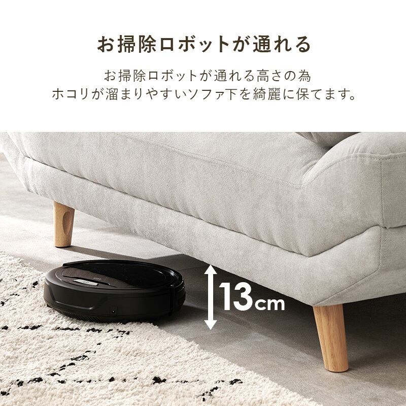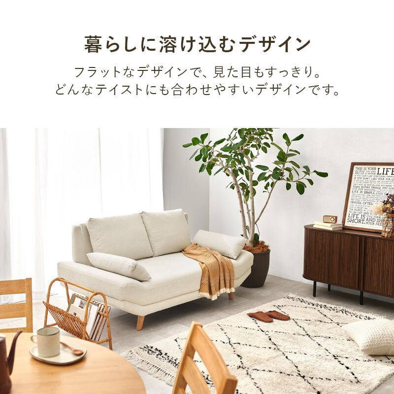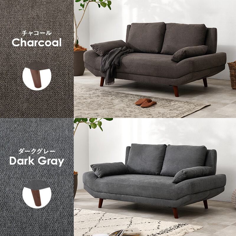 2人並んでゆったりとくつろぎたいけど大きなソファはお部屋に置きづらいという方に合わせた絶妙なサイズ感。奥行広めなので寝転んだりあぐらをかいても座れます。ロー/ハイ兼用