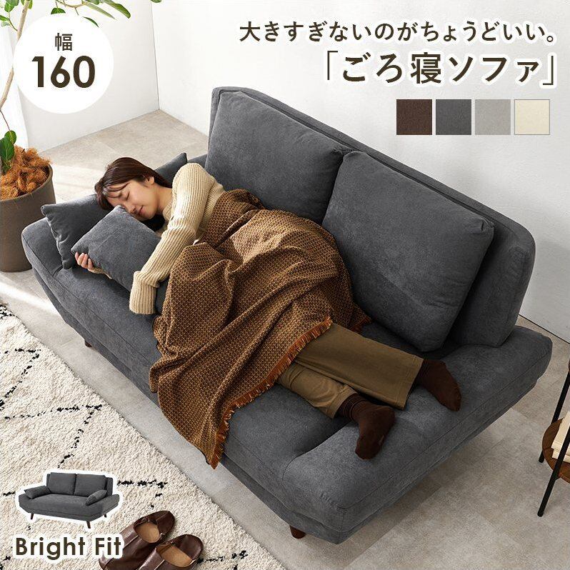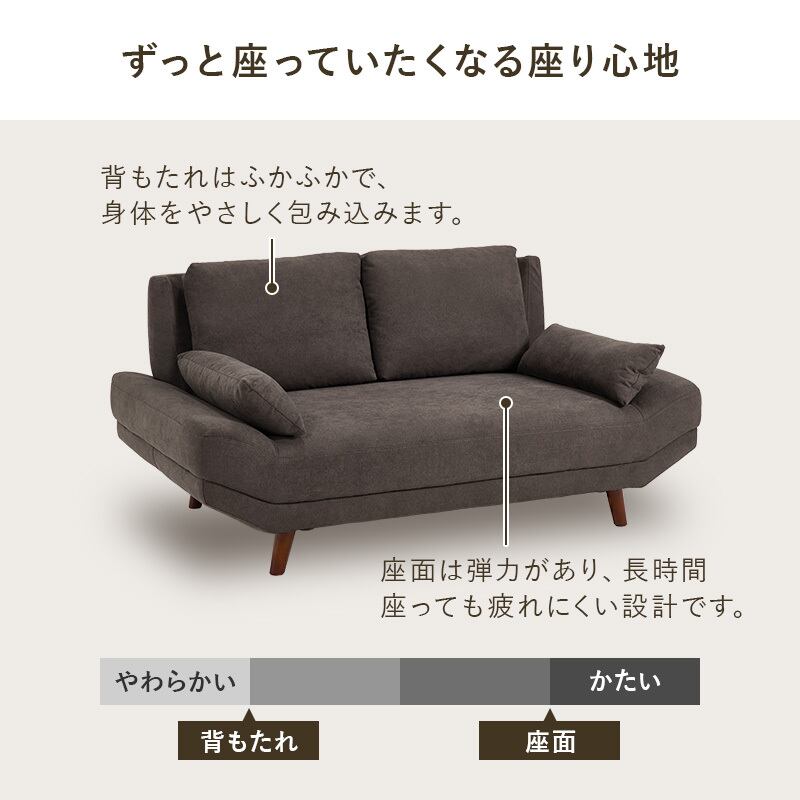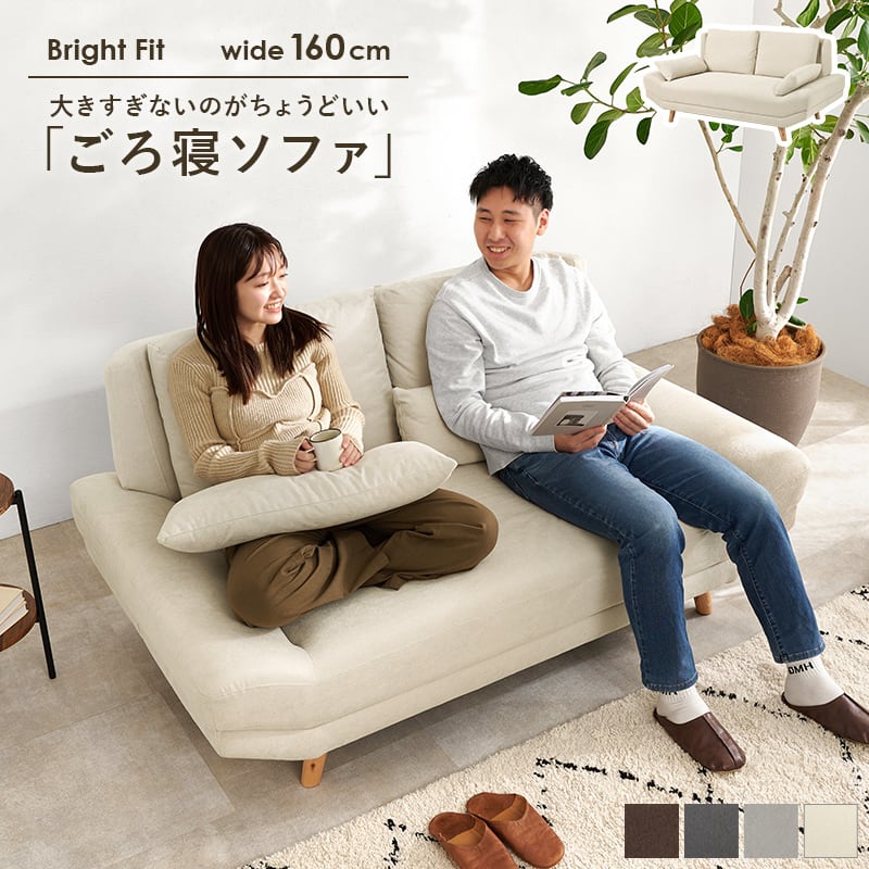 ソファ ブライトフィット2P 【開梱設置サービス付き】 クッション2個付き 幅160cm 奥行94cm ファブリックソファ 座面広い ごろ寝 ロー ハイ
