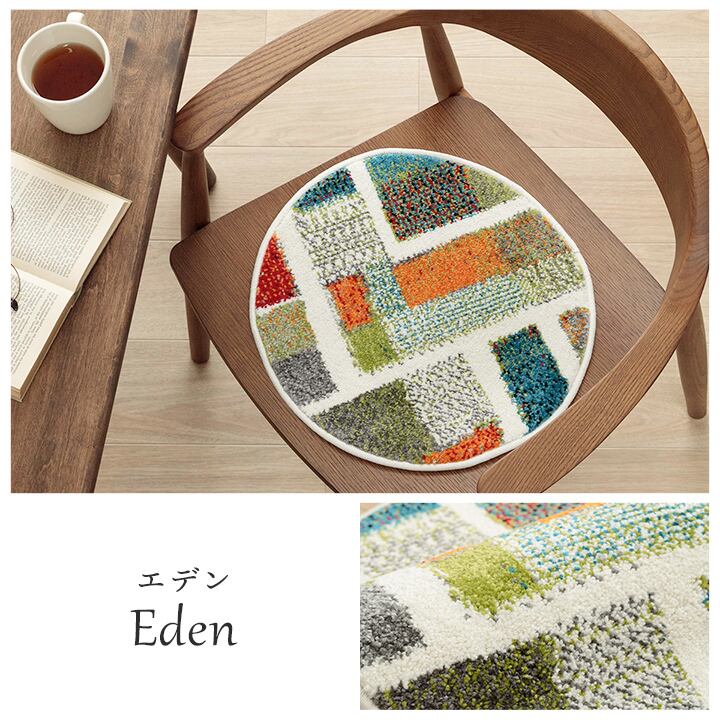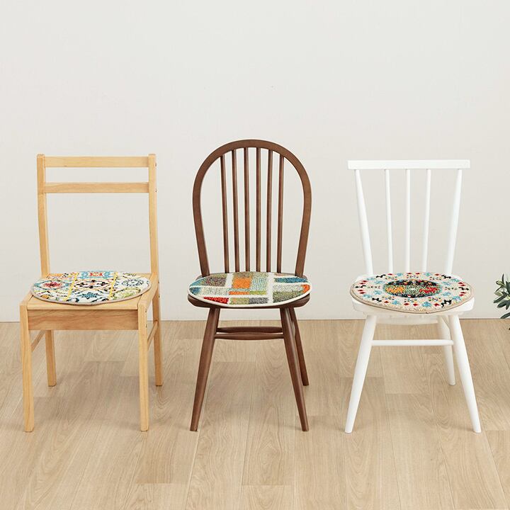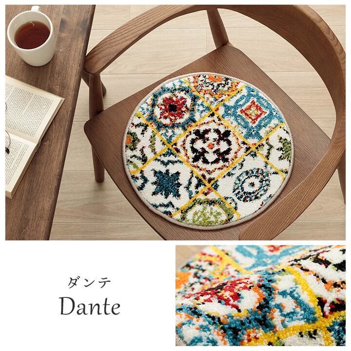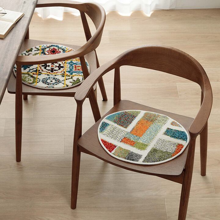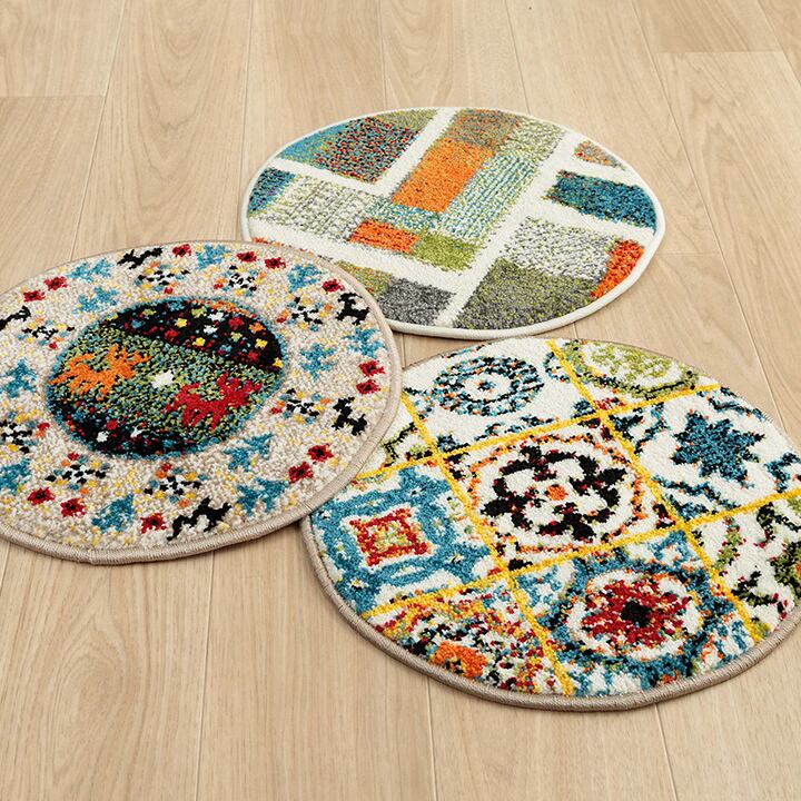 トルコ製チェアパッド 40cm丸 クッション 薄手 ウィルトン織り トルコ製 円形 丈夫 汚れにくい 床用 キズ防止マット ギャベ柄 モンドリアン柄 モロッコタイル柄 抗菌防臭 消臭