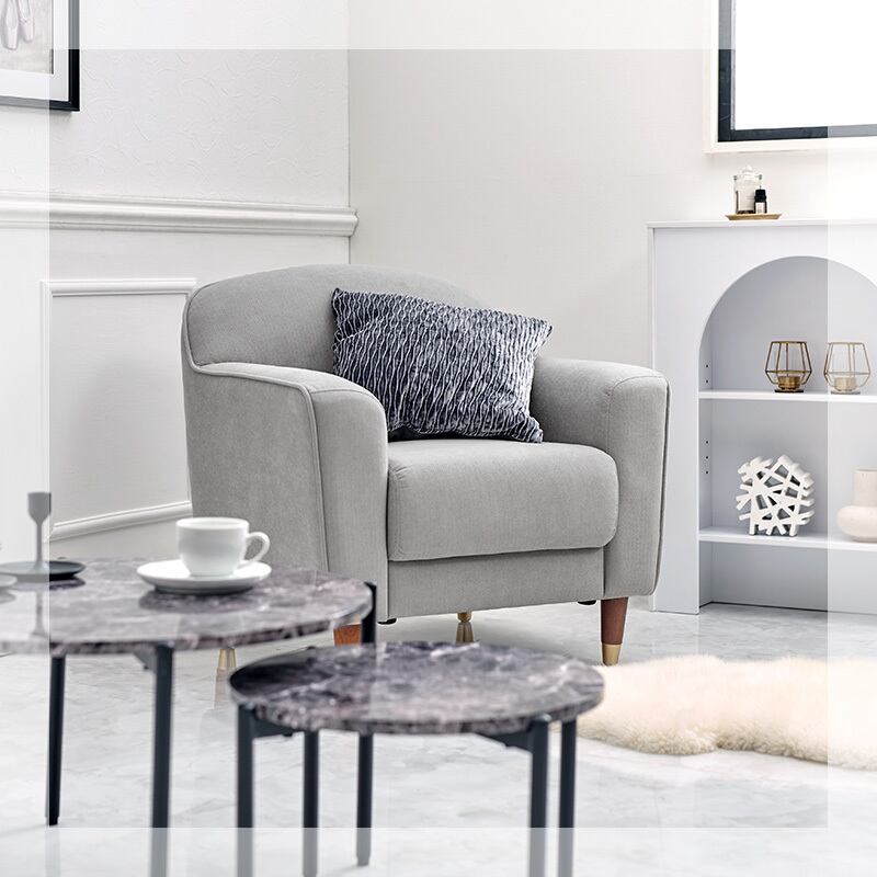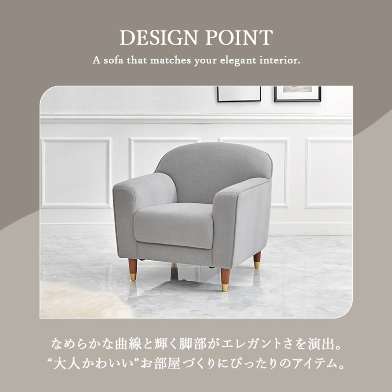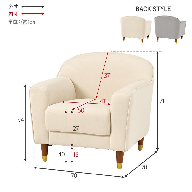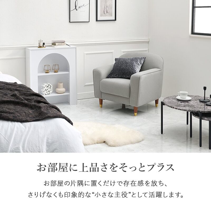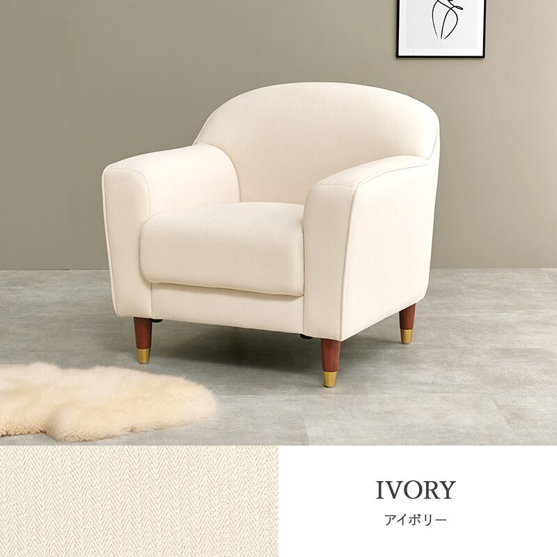 丸みのあるやさしいフォルムとゴールドをあしらった脚がエレガントさを演出。大人かわいい1人掛けのコンパクトソファ。ロー/ハイ兼用
