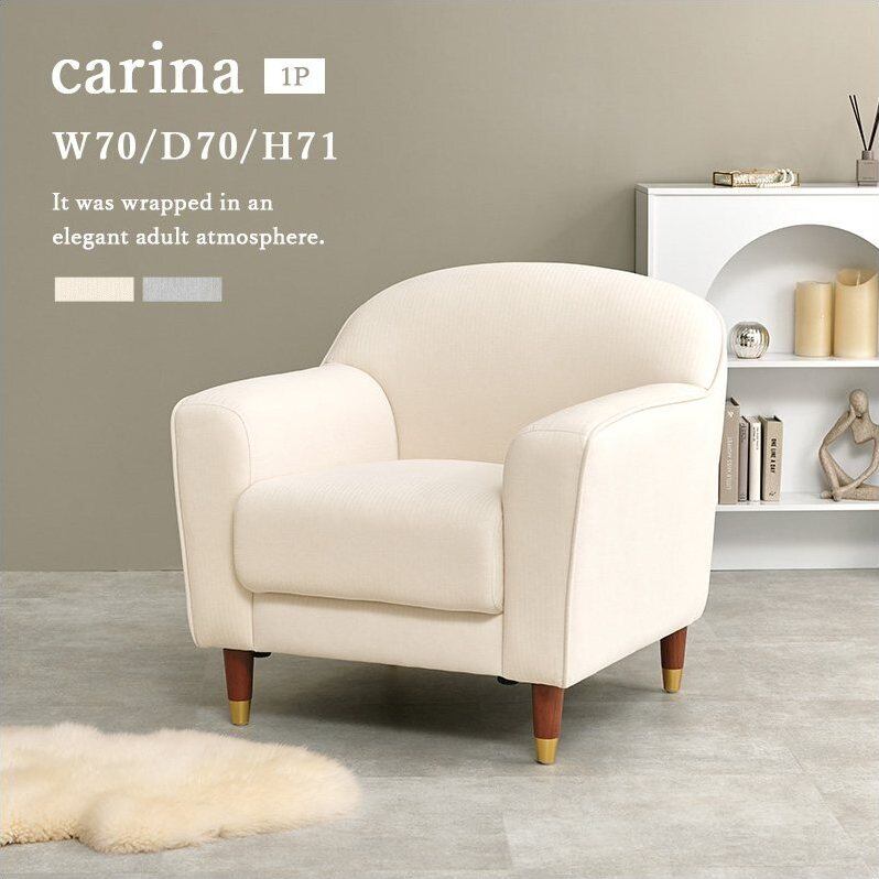 ソファ カリーナ1P 幅70cm 1人掛けソファ ローソファ 脚部のみ組み立て ゴールド脚 ファブリック