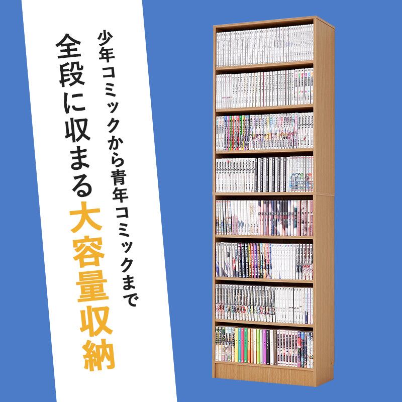 前後2列別々に棚板高さが変えられ、大容量収納できるマンガ好きの為の本棚。