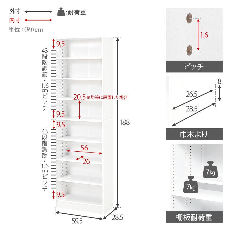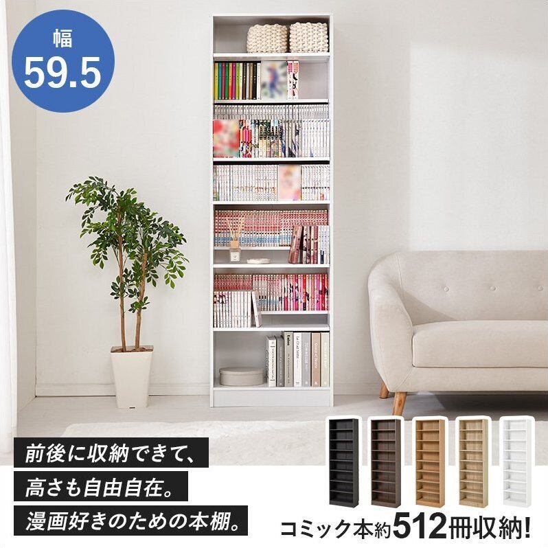 ブックシェルフ VKB-7282 幅59.5cm 本棚 ラック 大容量収納 前後2列 自由レイアウト 可動棚 転倒防止 横揺れ防止