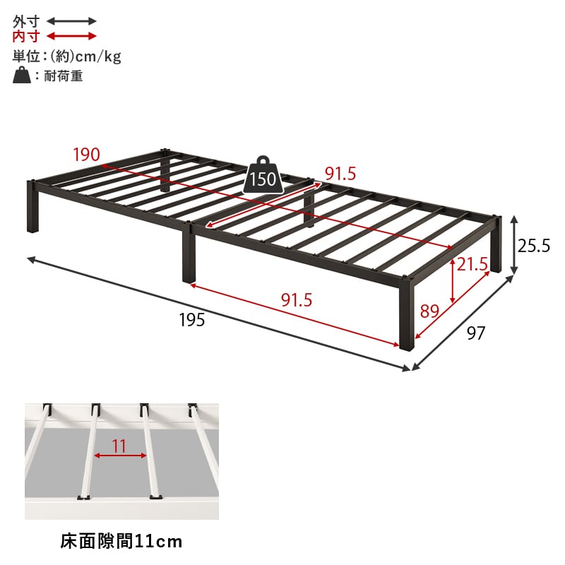 (約)幅97×奥行195×高さ25.5×床面高25.5cm