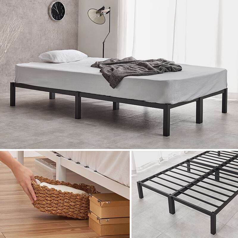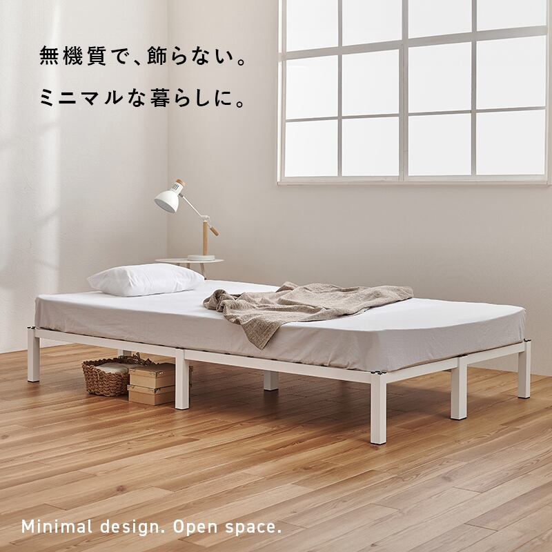 ネジを使わずパーツをはめ込む仕様なのでネジ頭が見えず、すっきりシンプルなデザインのセミダブルベッド。床面下は衣装ケースなどを入れて収納スペースにもなります。