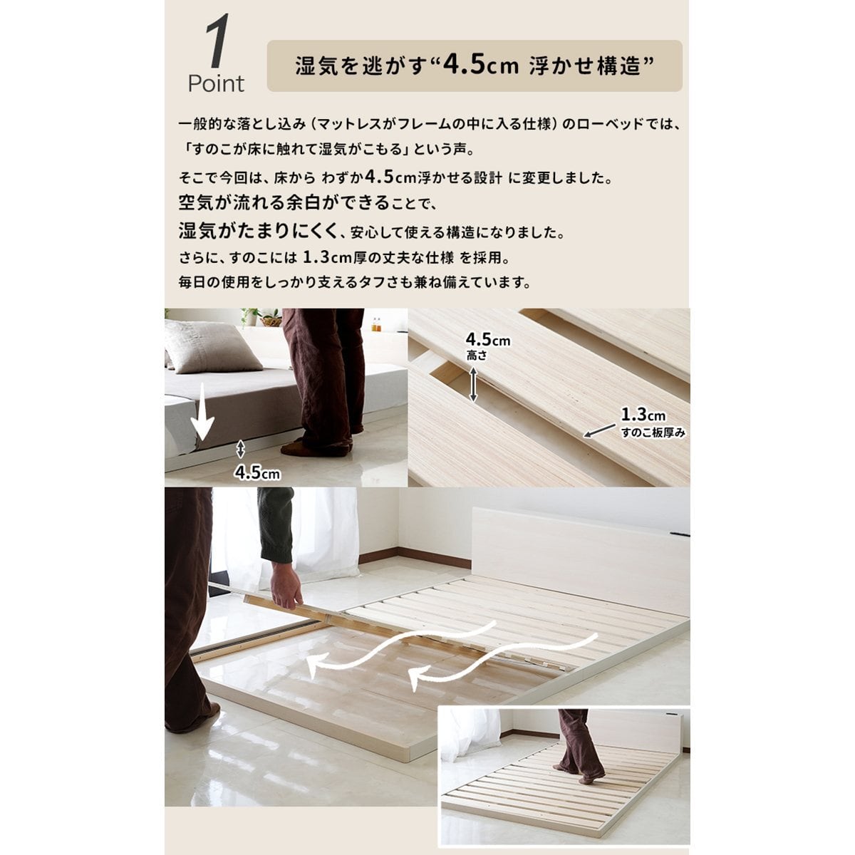 角のない、やさしいすのこローベッド /くるみ【KURUMI】 スモールセミシングルサイズ scy44751-ri1401gy グレーマットセット 2口コンセント付き