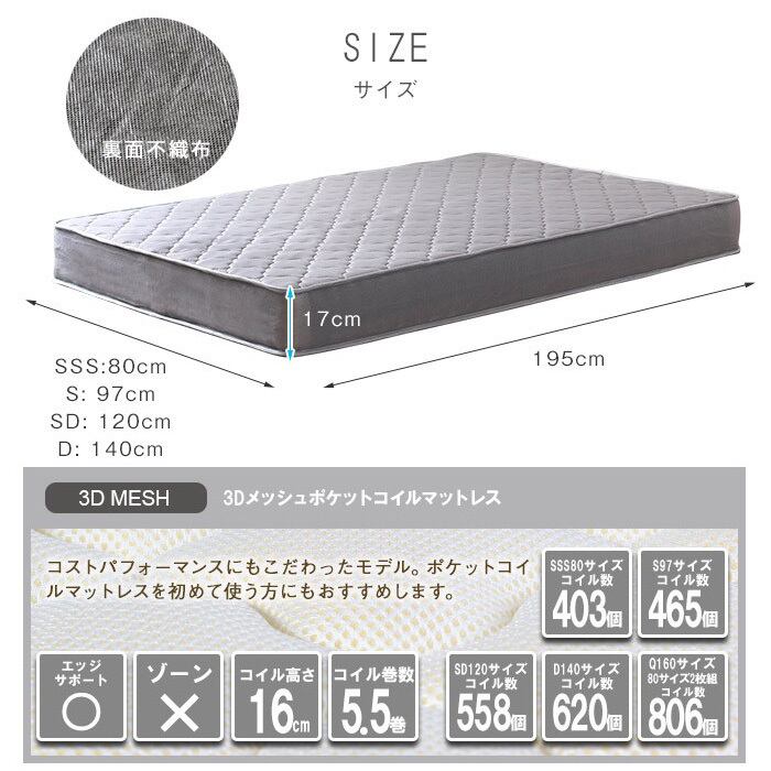 ※こちらは、スモールセミシングルサイズ/グレーマットレスセットの販売ページになります。