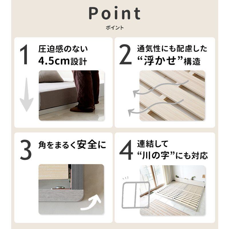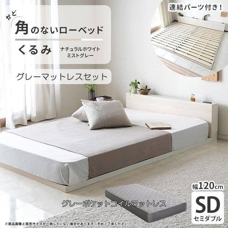 角のない、やさしいすのこローベッド /くるみ【KURUMI】 セミダブルサイズ cy44754-ri1401gy グレーマットセット 2口コンセント付き