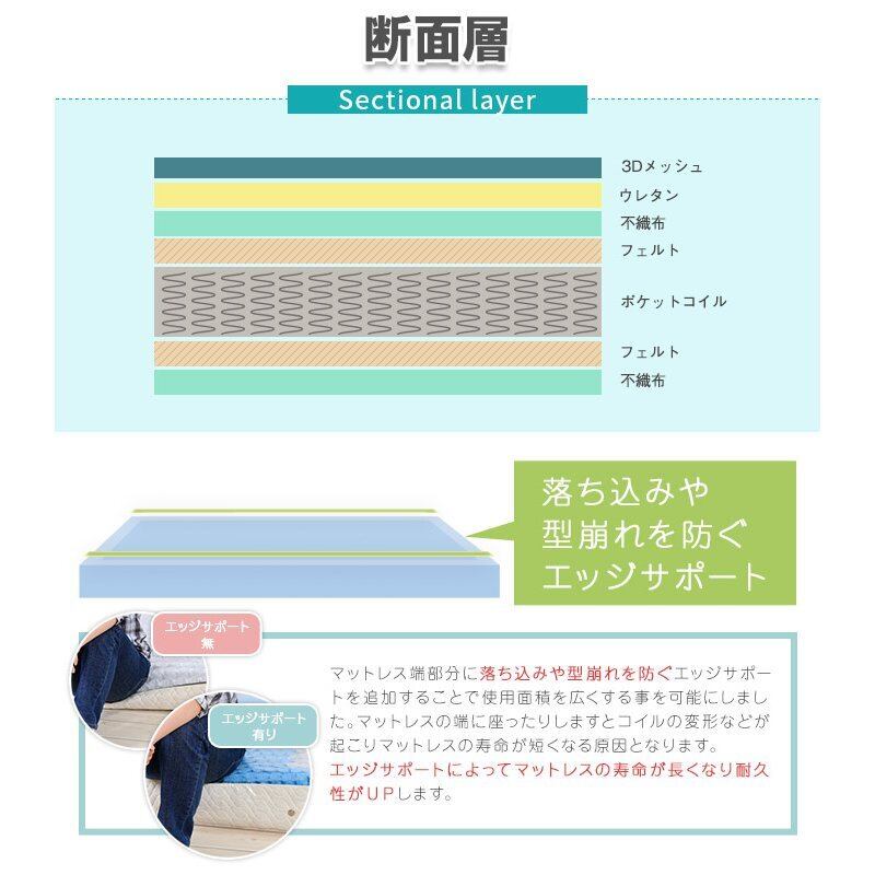 ポケットコイル、ウレタン、フェルト