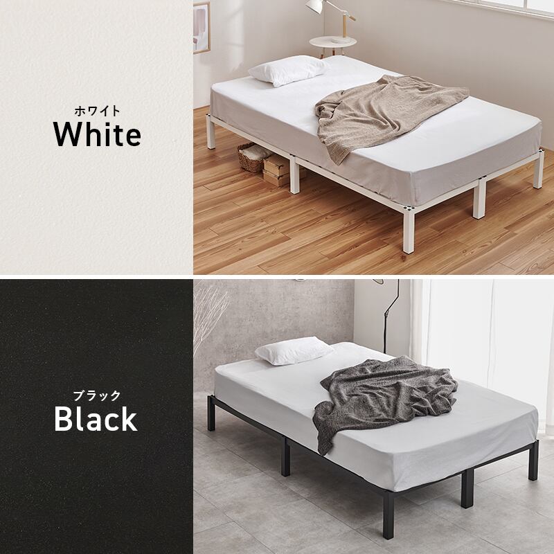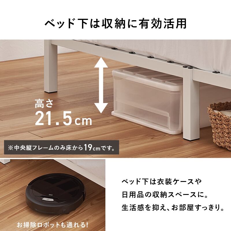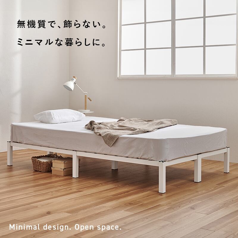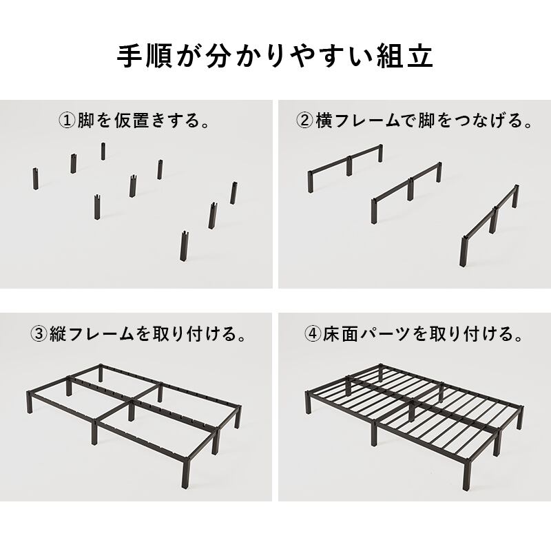 ネジを使わずパーツをはめ込む仕様なのでネジ頭が見えず、すっきりシンプルなデザインのセミダブルベッド。体型に沿うように点で支え、体圧を分散するポケットコイルマットレスセット