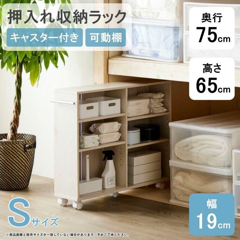 押入れ収納ラック Sサイズ IW-29 幅18.8cm 奥行75cm 高さ65cm デッドスペース収納 キャスター付き 可動棚