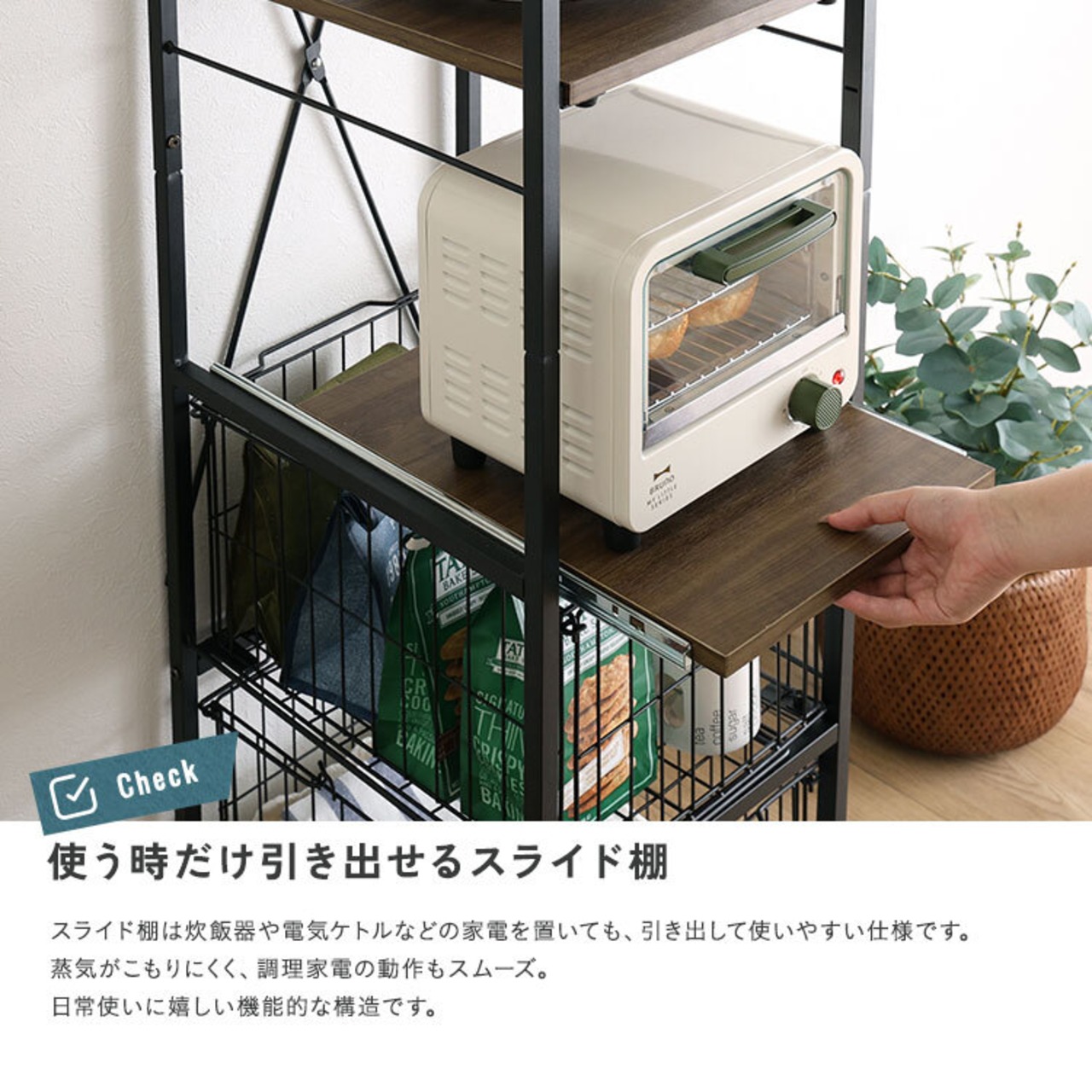 シンプルで無駄のない、直線的なフレーム設計のキッチン収納ラック!