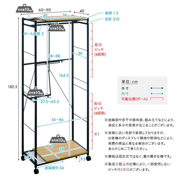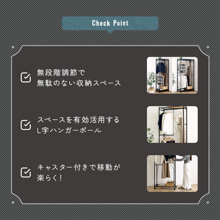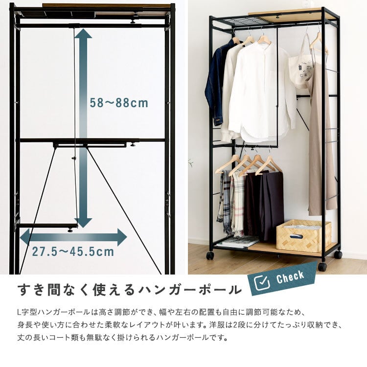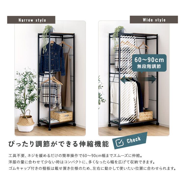 お好みの幅に調整可能でお部屋や洋服の量に合わせてピッタリ調整可能です!
